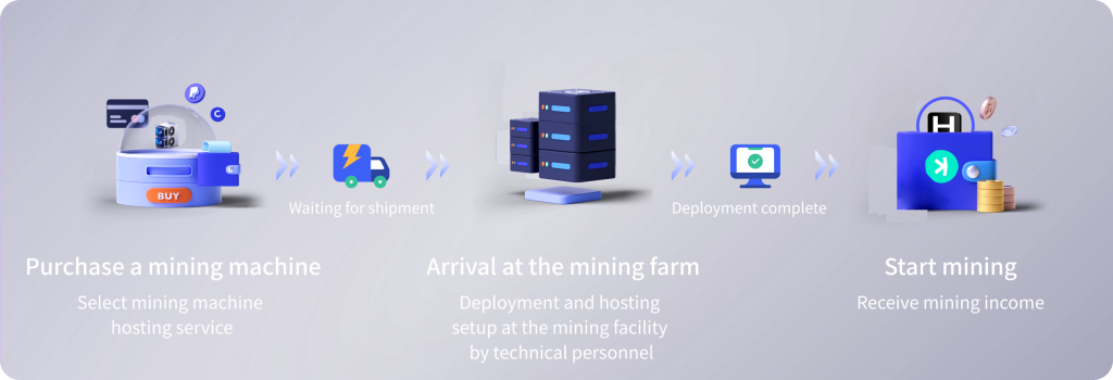 Users on our platform purchase hosted mining machines, and we are responsible for procurement, transportation, and hosting at the ICERIVER mining farm. The mining farm is deployed and maintained by professional personnel 24/7, eliminating the need for complex configuration and management processes, allowing for easy and fast access to stable mining income.